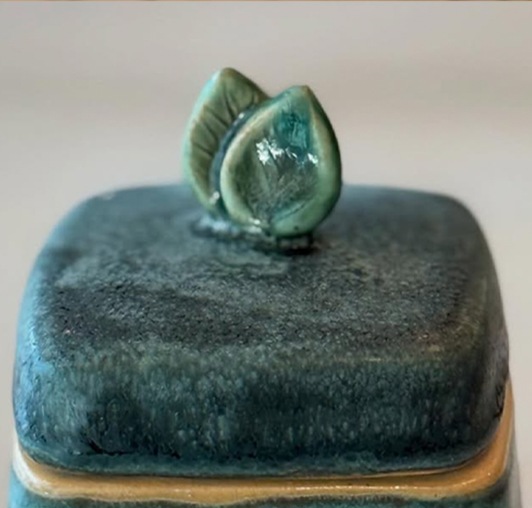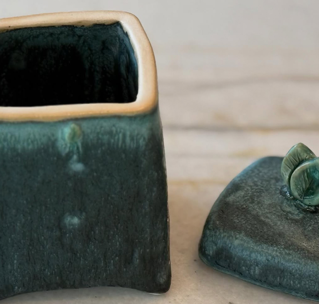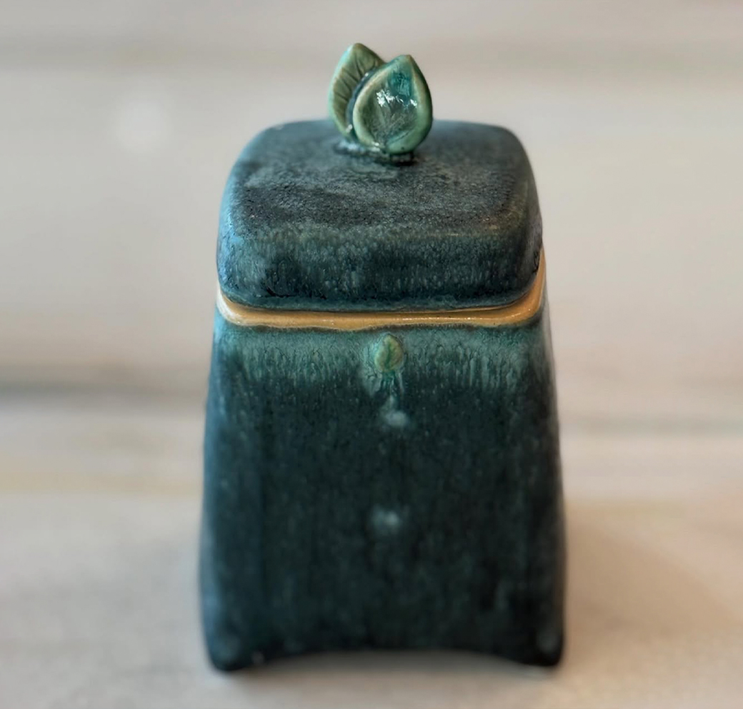 The Verdant Secret is a small hand-crafted keepsake box designed to hold life’s most delicate treasures. Finished in a deep, luminous teal, it carries a sense of depth and quiet luxury, while the tiny leaf cresting the lid serves as a gentle symbol of growth, memory, and care. Perfectly scaled for a vanity or bedside table, this piece offers a place for rings, notes, or meaningful tokens—objects too small to leave unguarded.